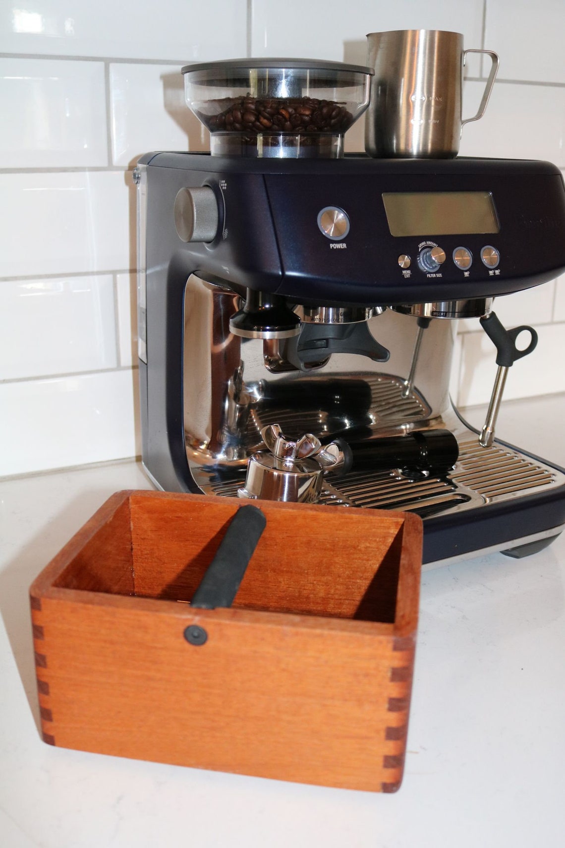 96% buyer satisfaction based on 2,000+ online buyer reviews. Teakwood espresso knock box for coffee machine | etsy. Besides good quality brands, you'll also find plenty of discounts when you shop for knock box wood during big sales. Here is how i make a coffee knock box that is not only functional but also arty as well. A wide variety of wooden coffee knock box options are available to you, such as feature, material, and color. This elegant handmade knock box is the perfect blend of form and function. Coffee knock box stainless steel wood coffee grounds box barista residue bucket. Coffee knock out box drawer under grinder grounds espresso waste stainless steel. Sage knock box mini coffee grind bin. Finger joints are made to provide strength. 10.7 x 6.6 x 4.5 inches, knock box measures: Espresso knock box, knock out box for coffee grounds. • perfect solution for a busy coffee shop.